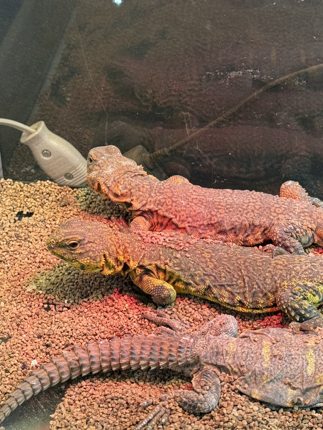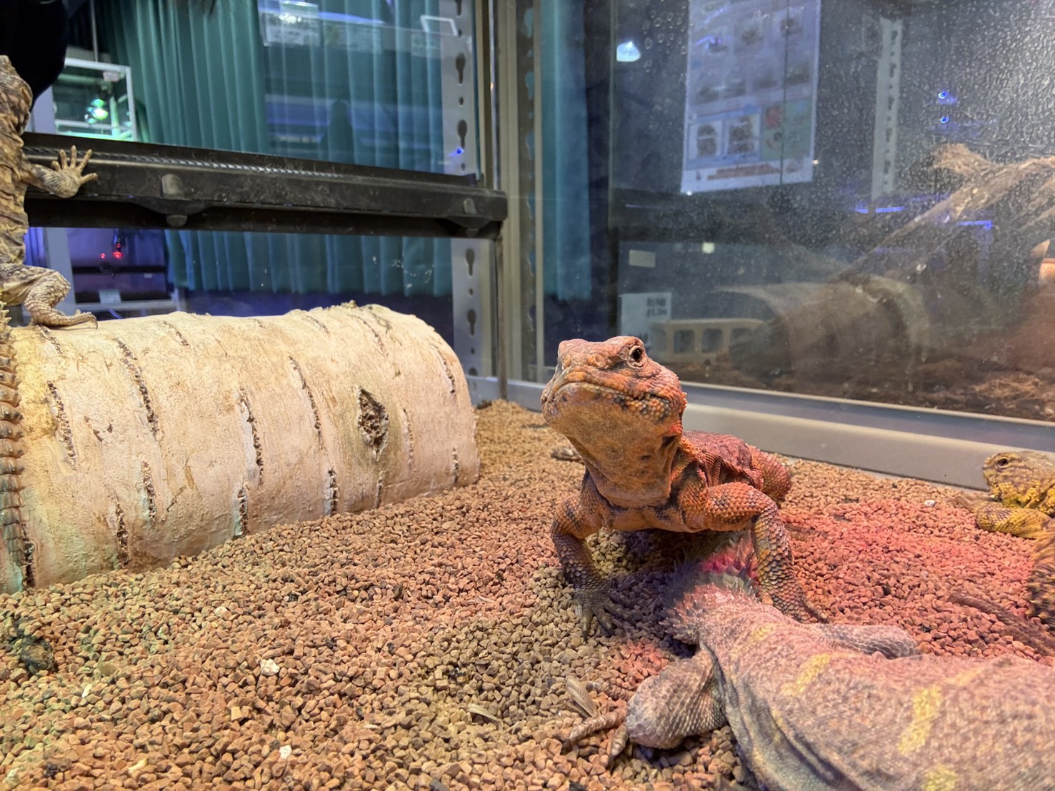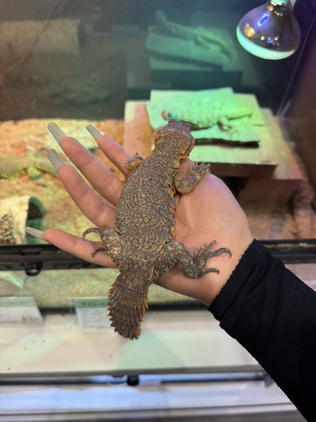 アフリカ北部に生息するトゲオアガマの一種。飼育の際はケージ内にワット(W)数の強いライトで高温のバスキングスポットを作ってあげるのがコツ!夜間と昼間の温度差をつけると生息地の環境に近づけることができる。水皿は設置せずに野菜から水分を補給させると良い。正面顔がおじさんみたいでかわいい。